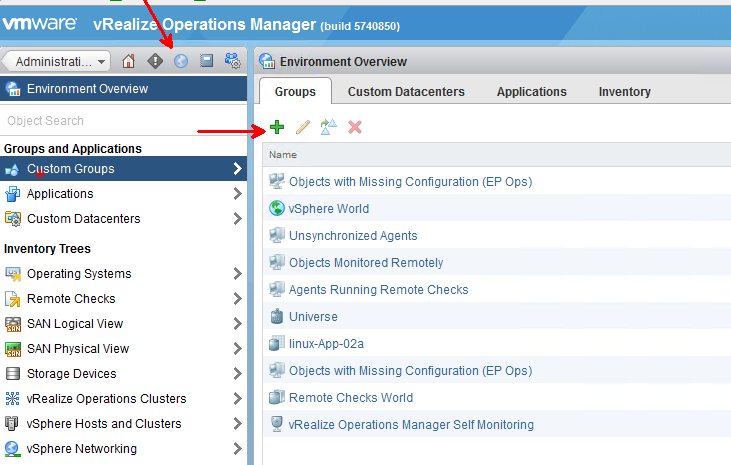 We go into Custom Groups from inside vROps and click on the plus to add a new group