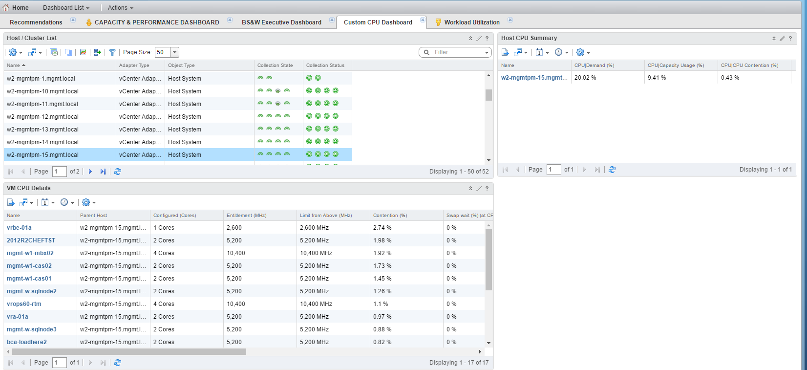 I was doing a vRealize Operations demo with a customer today and they had a specific request on how to see some CPU data. They wanted to see a list of physical hosts, CPU utilization metrics on each of those hosts, and then be able to drill into specific CPU stats for the VMs running on the host. We will create a custom dashboard to easily display this information.