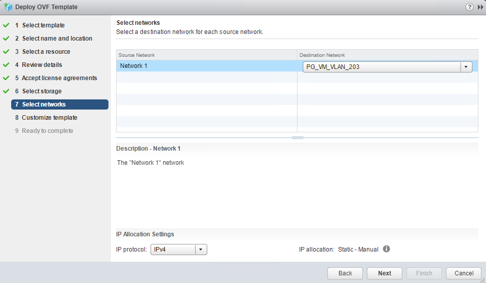 Standard OVF deployment options here, setting the hostname and IP address information.