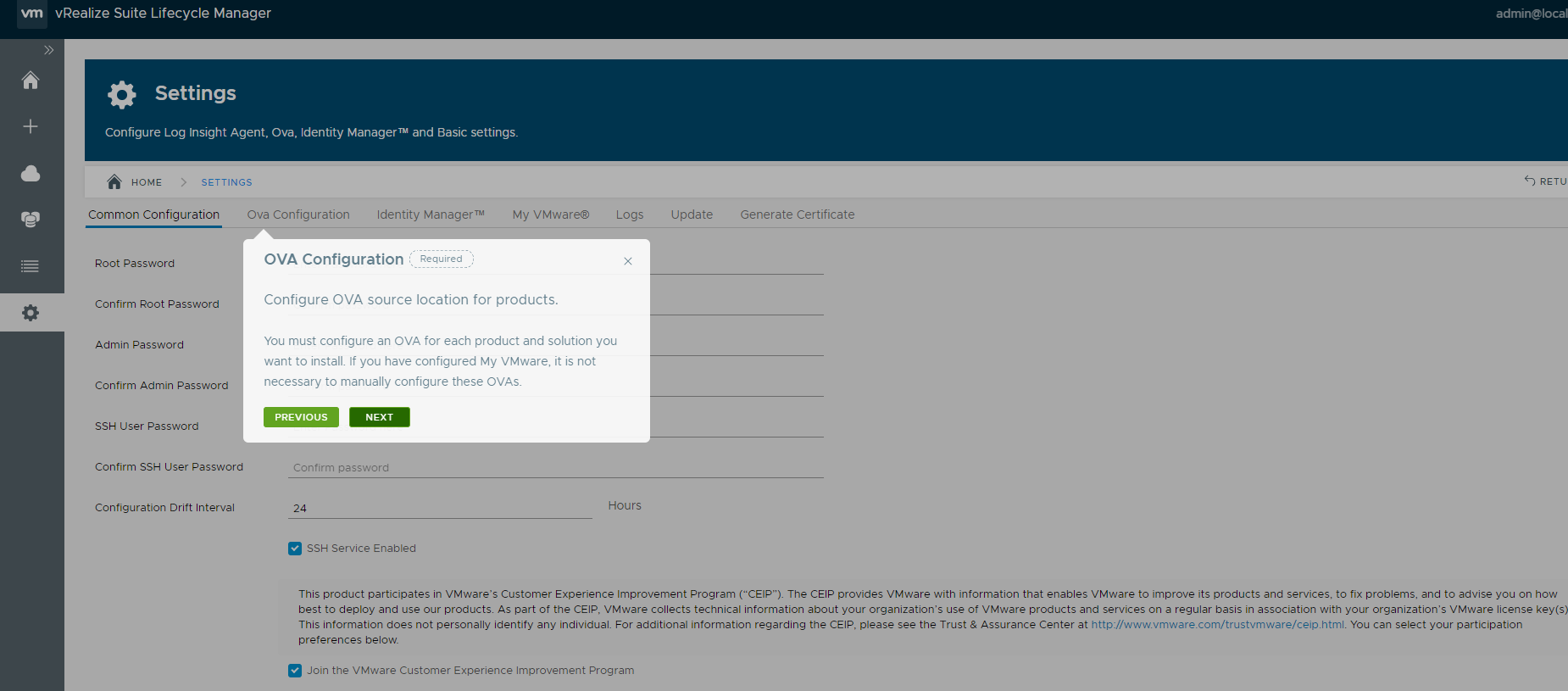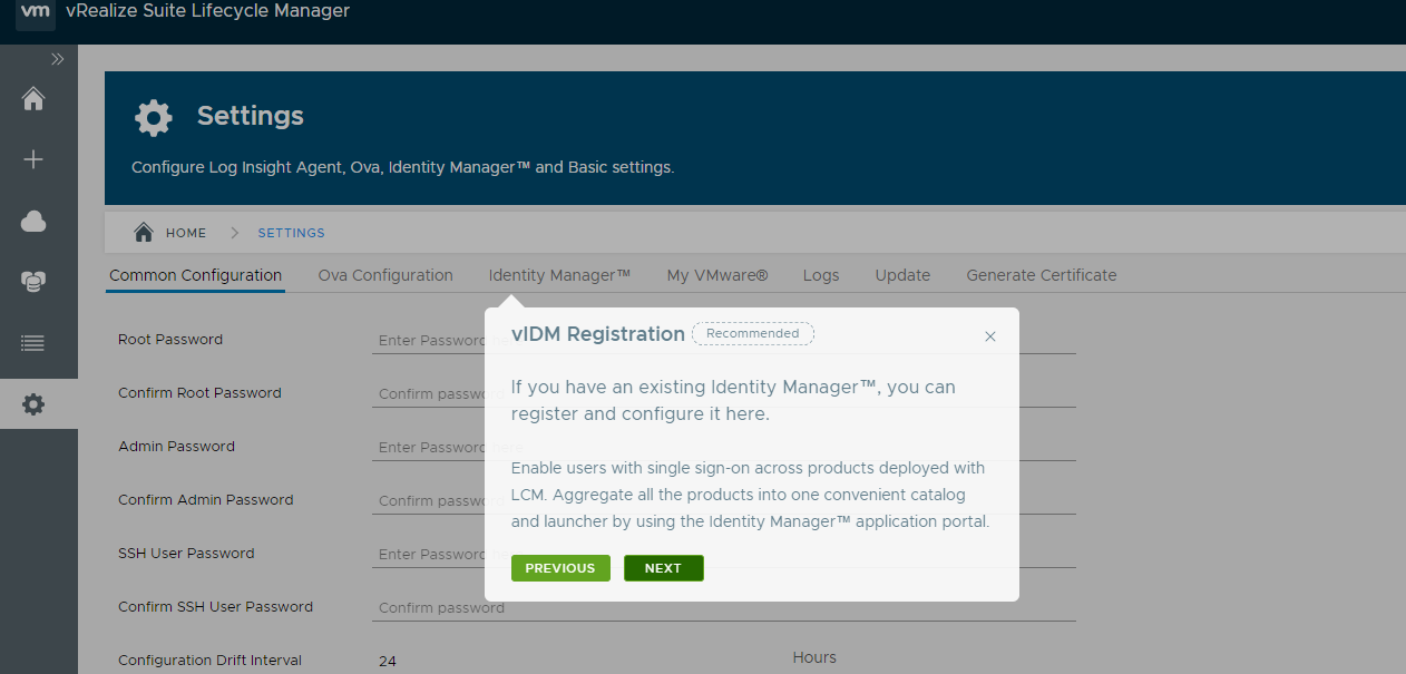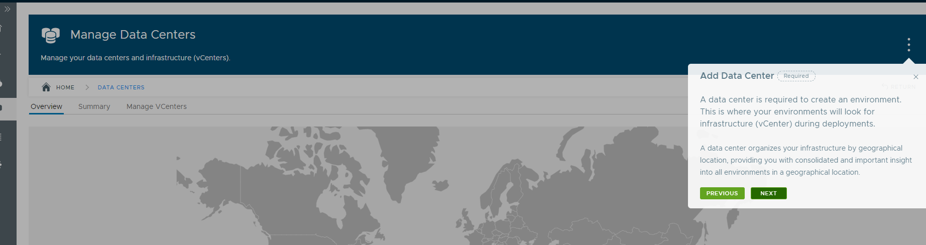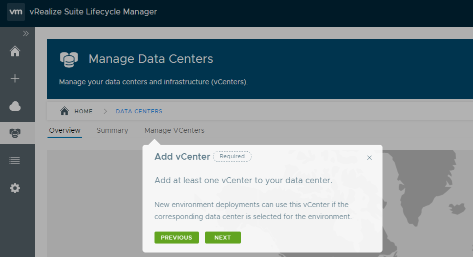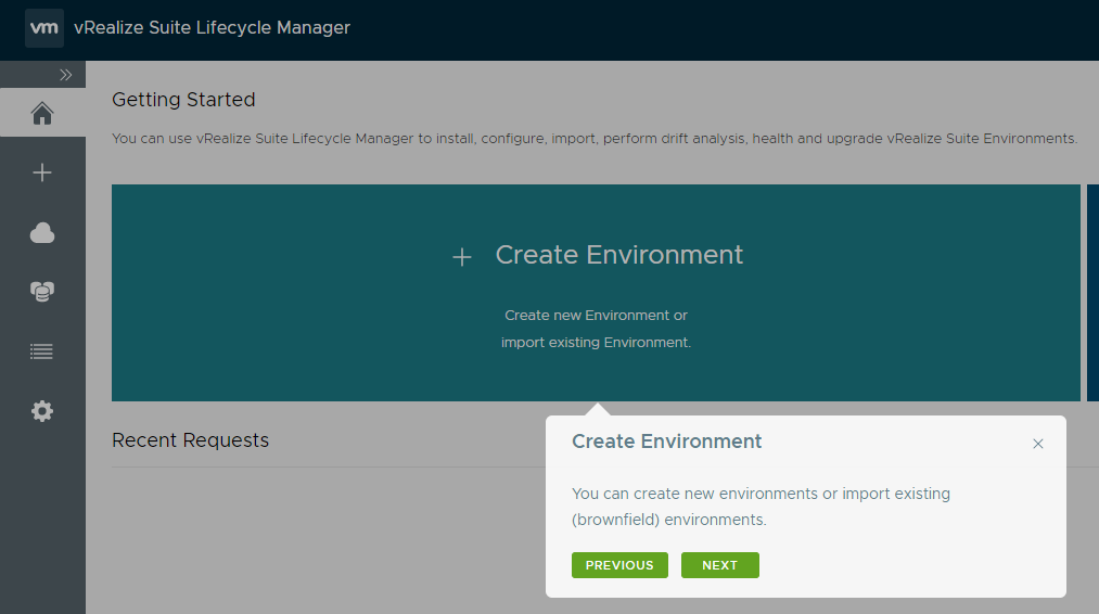 When you log in to vRealize Suite Lifecycle Manager the first time, it takes you through a tour of the UI.