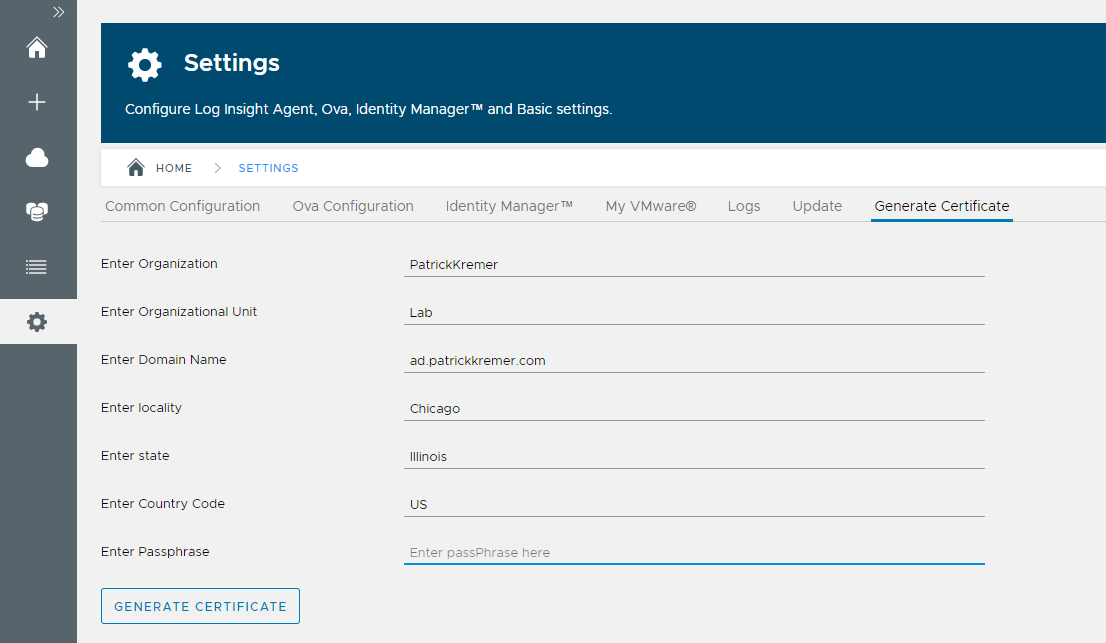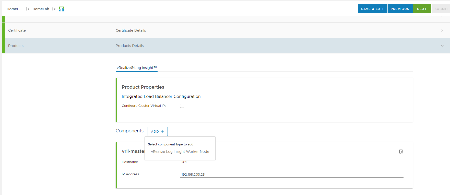 For my first product deployment, I decided on a quick win with Log Insight.