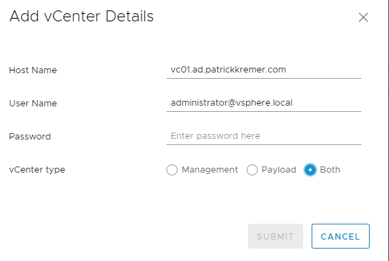 Now adding a new vCenter to the datacenter