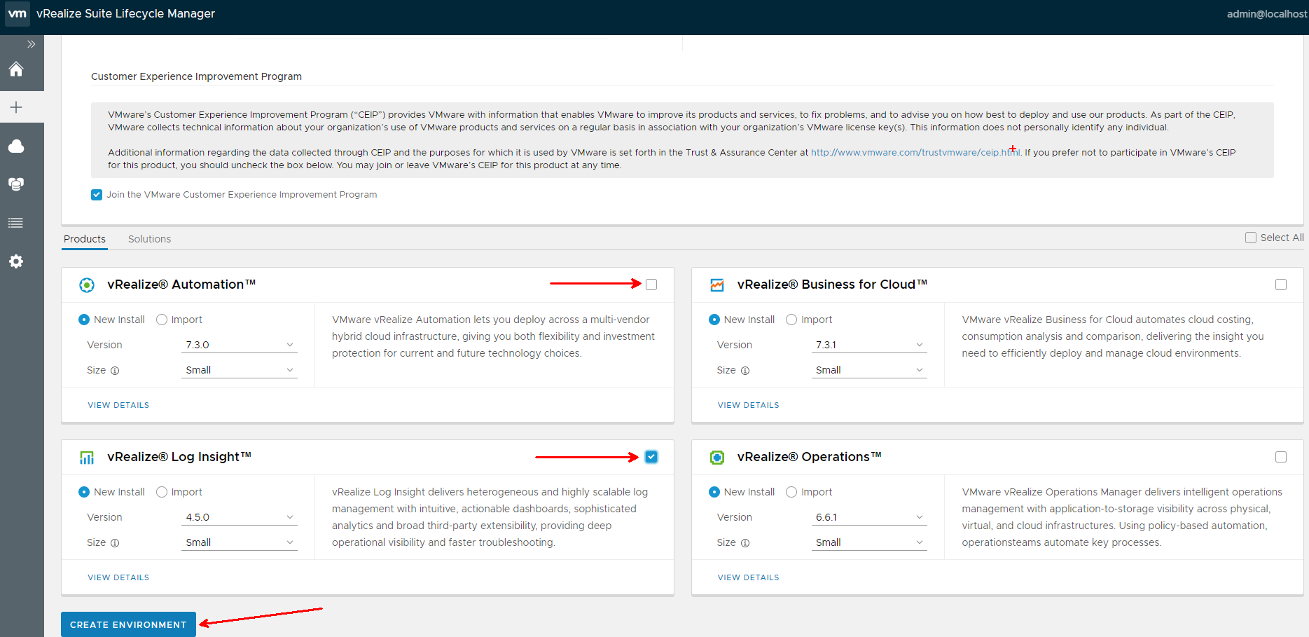 I’m only installing Log Insight at this time, so check the box.