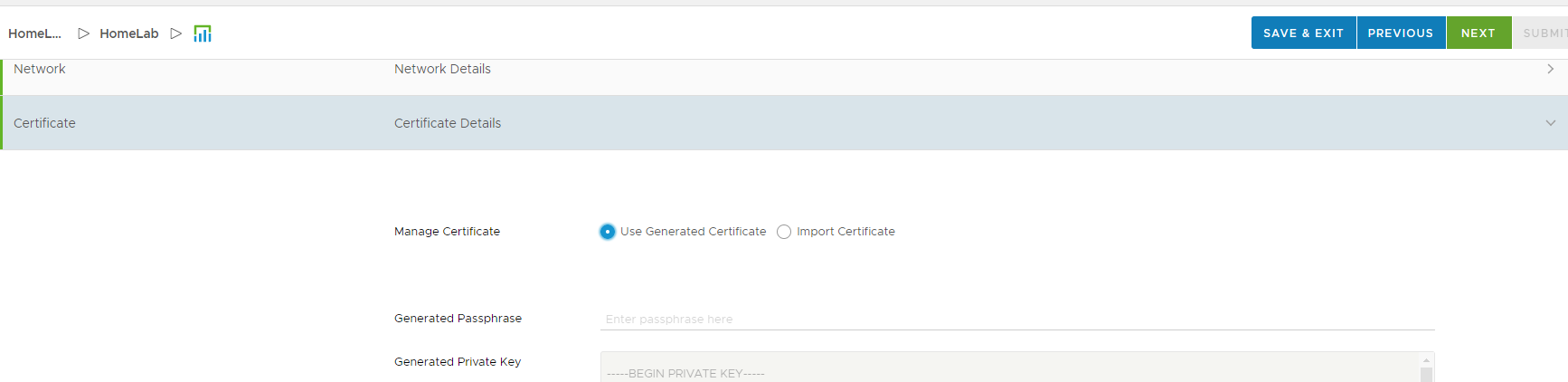 First I generated a certificate