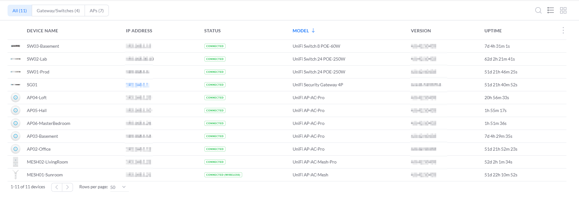 At the edge I have a UniFi Security Gateway 4P. I have 2 24 port POE-250W switches, one serving the homelab and one serving Production WiFi.